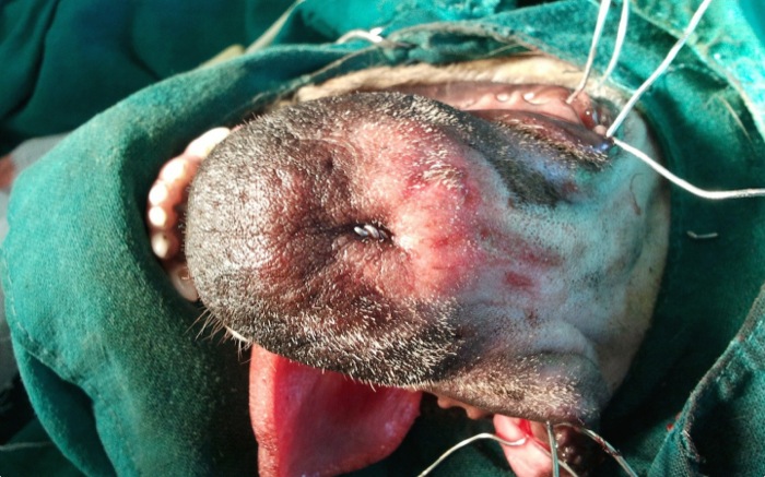 | Historial | Perro mordido por otro animal al asomar el morro por la puerta del jardín |