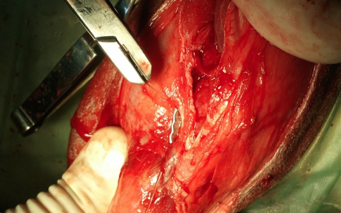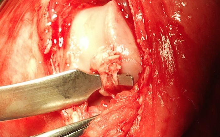 A pesar de las tensiones soportadas el LCC no está roto completamente. Se decide ante la importante lesión su retirada completa desde su origen a inserción en la meseta.